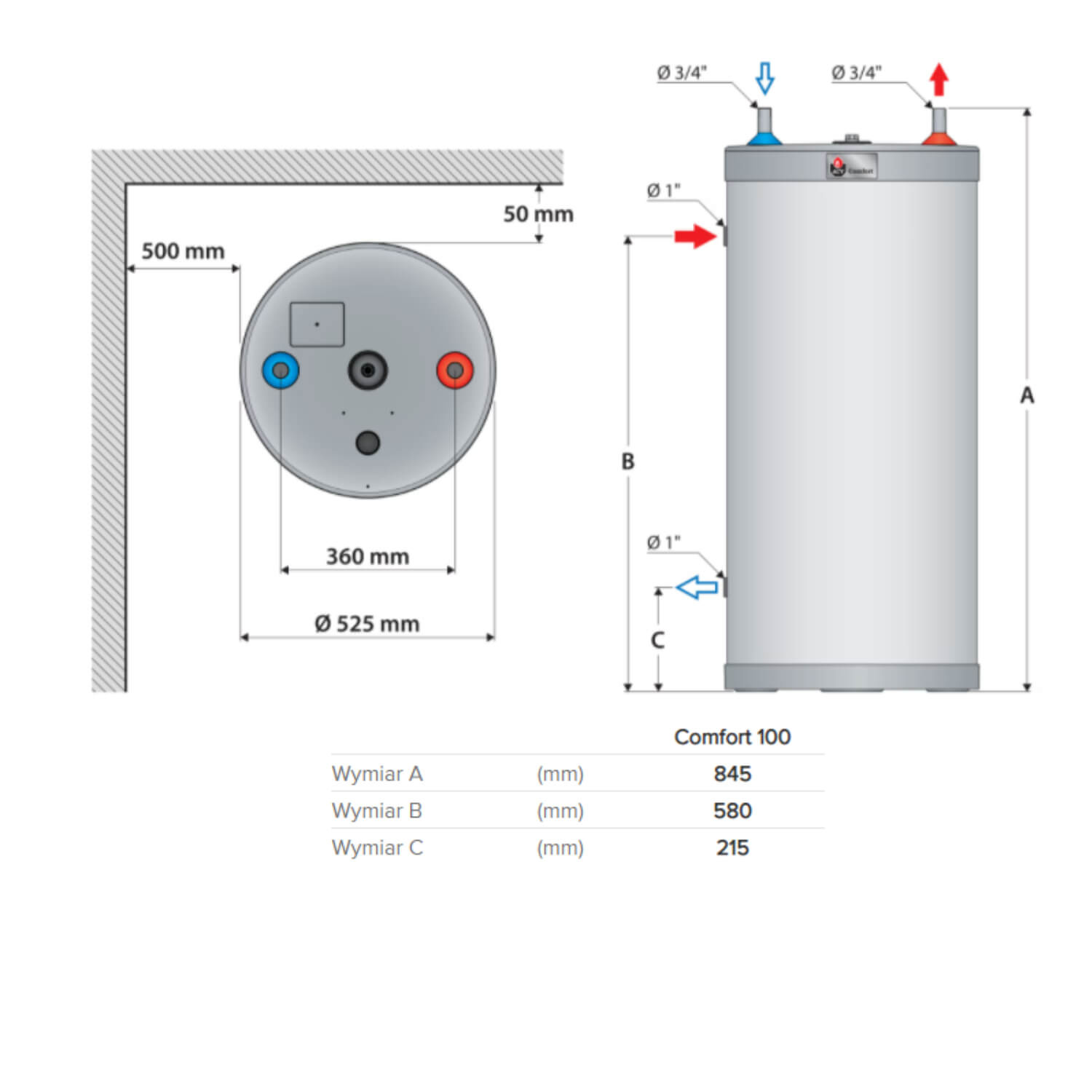 Najważniejsze dane techniczne – Comfort 100