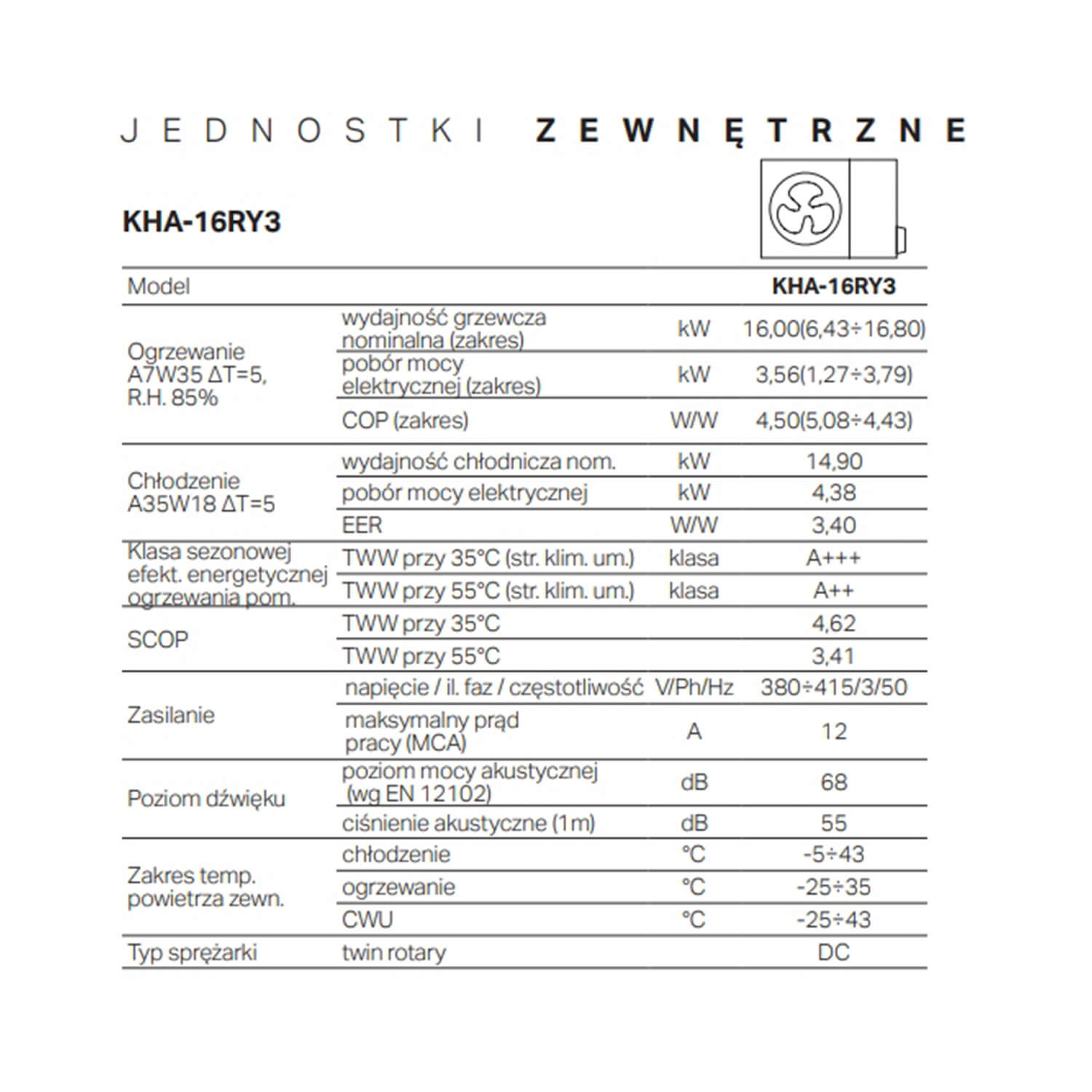 KAISAI Pompa ciepła monoblok KHC Arctic 16 kW