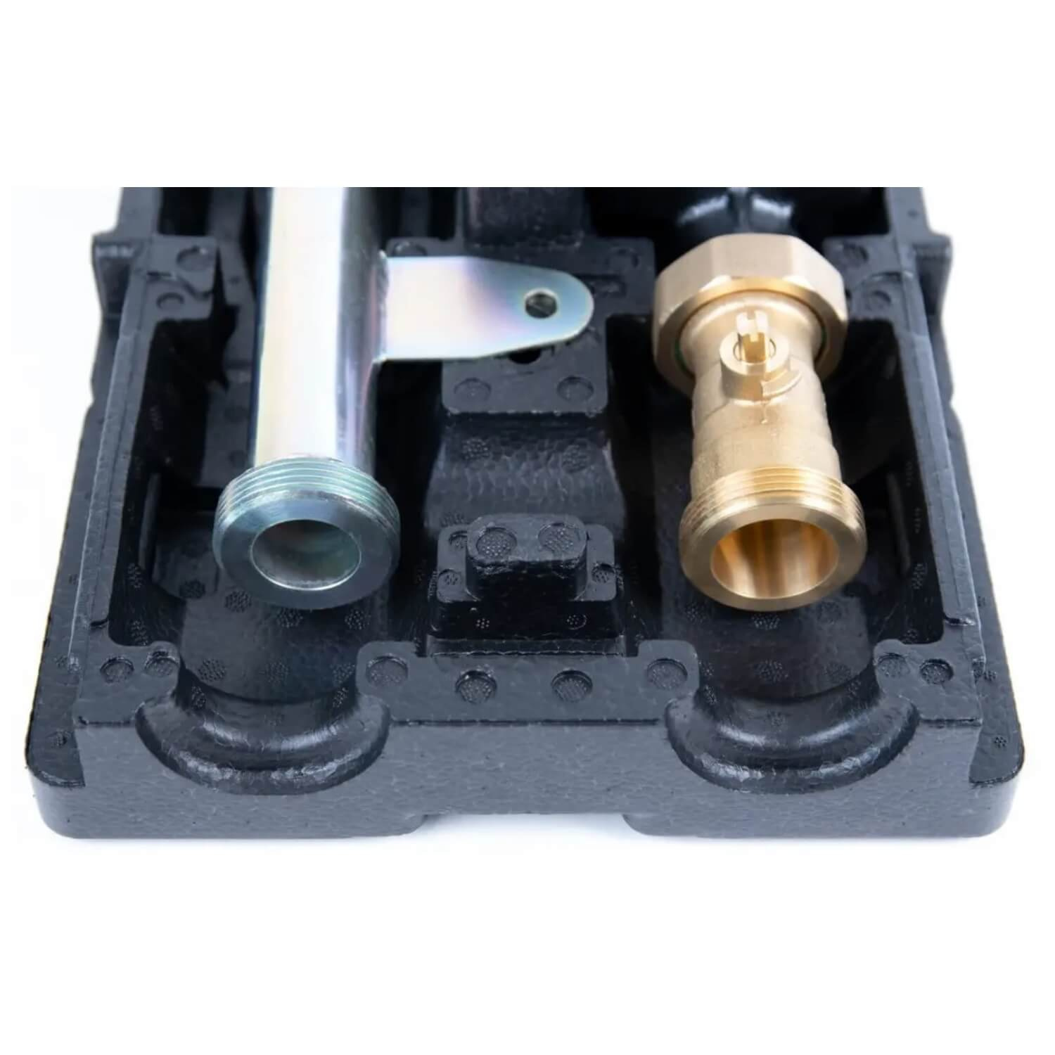 Elementy dostawy: kołki montażowe, tuleje zaciskowe na czujniki temperatury, uszczelki do połączenia źródła ciepła, adapter do montażu siłownika na zaworze mieszającym, naklejki do oznaczenia obiegu.