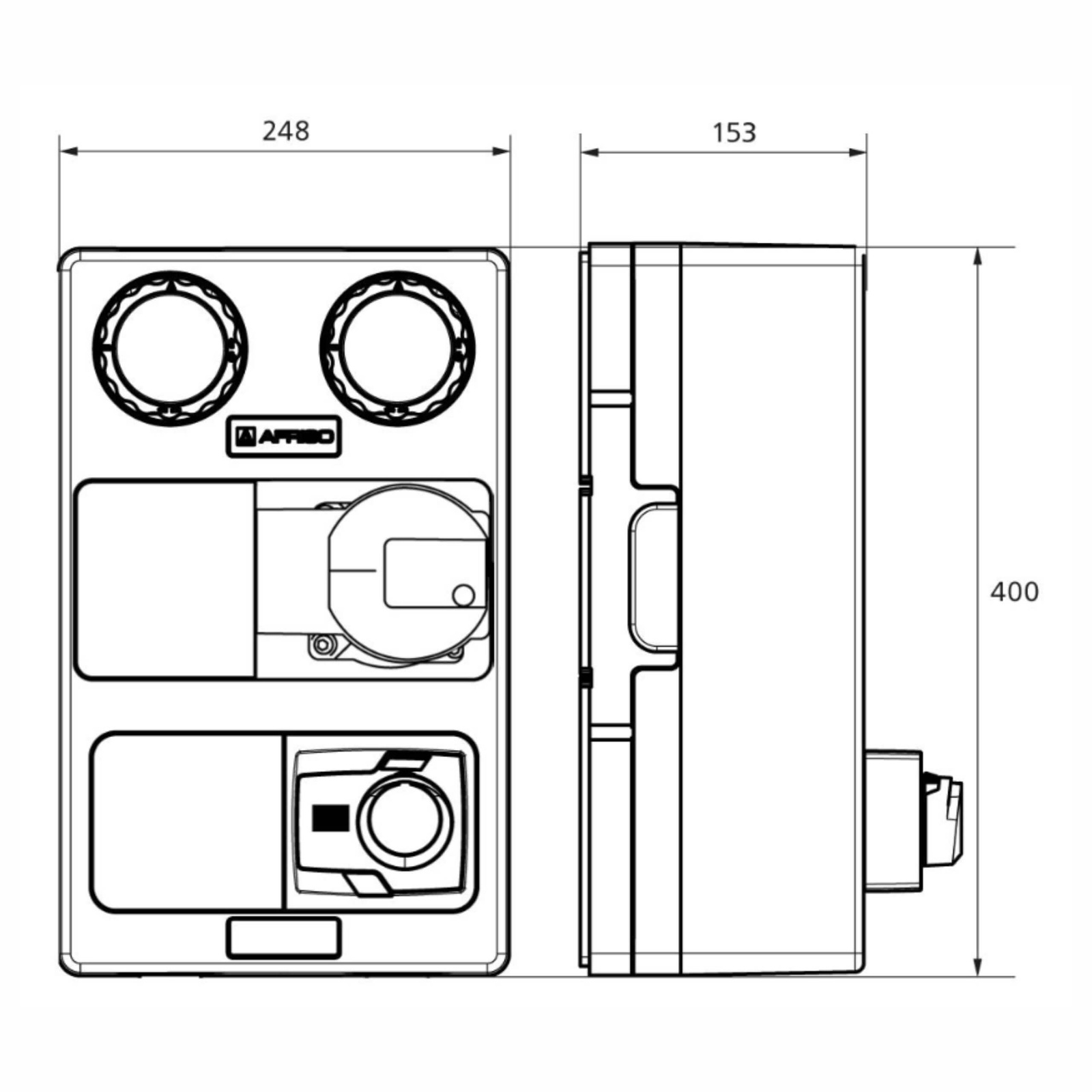Kompatkowy moduł hydrauliczny do instalacji grzewczych i chłodzących — krótsza wersja grup PrimoTherm, zaprojektowana z myślą o łatwym montażu w ograniczonej przestrzeni serwisowej. Wyposażony w termometry, zawór zwrotny, zawory odcinające na zasilaniu i powrocie oraz izolację termiczną. Zainstalowany zawór mieszający ARV Kvs Vario (Kvs regulowane 2,5–12 m³/h), pompa Wilo Para SC 25/6 oraz regulator ACT 343 ProClick (stałotemperaturowy, 230 V AC, 120 s).