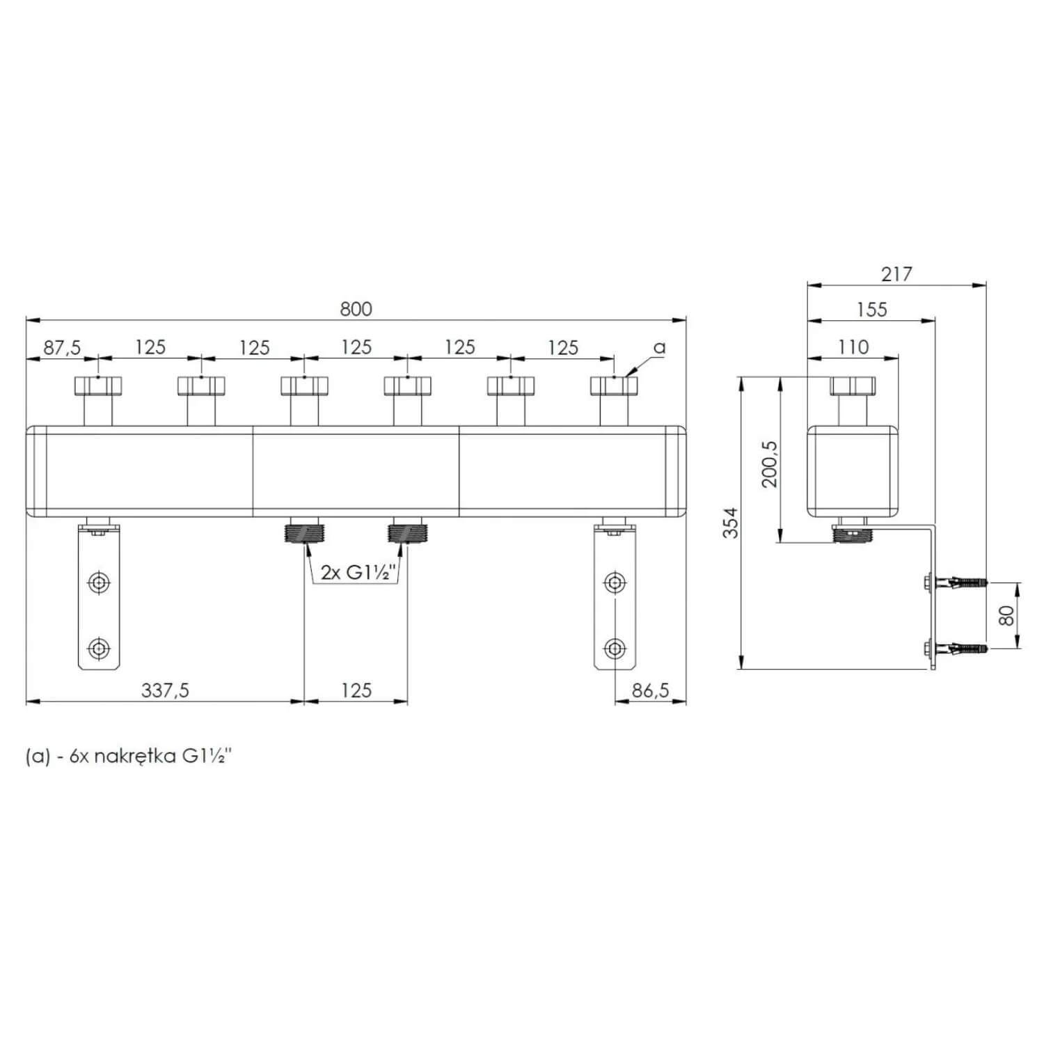 - Przyłącza od strony instalacji: 6x nakrętka G1½"