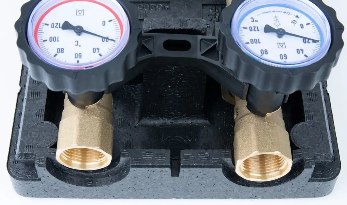 - Montowany na ścianie pomiędzy źródłem ciepła lub chłodu a grupami pompowymi.