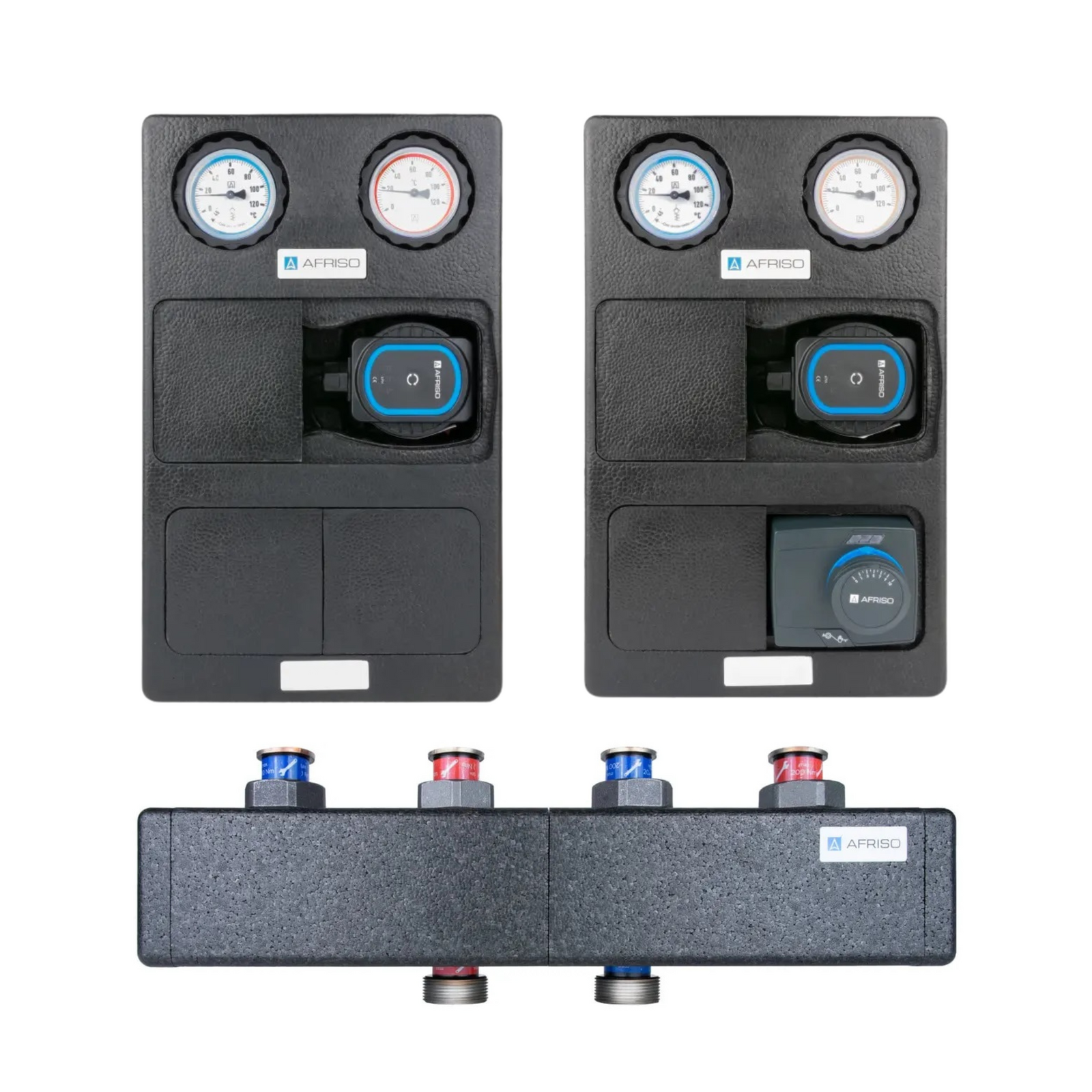 Zestaw dwóch grup pompowych i rozdzielacza na 2 obiegi bez sprzęgła – AFRISO PrimoTherm