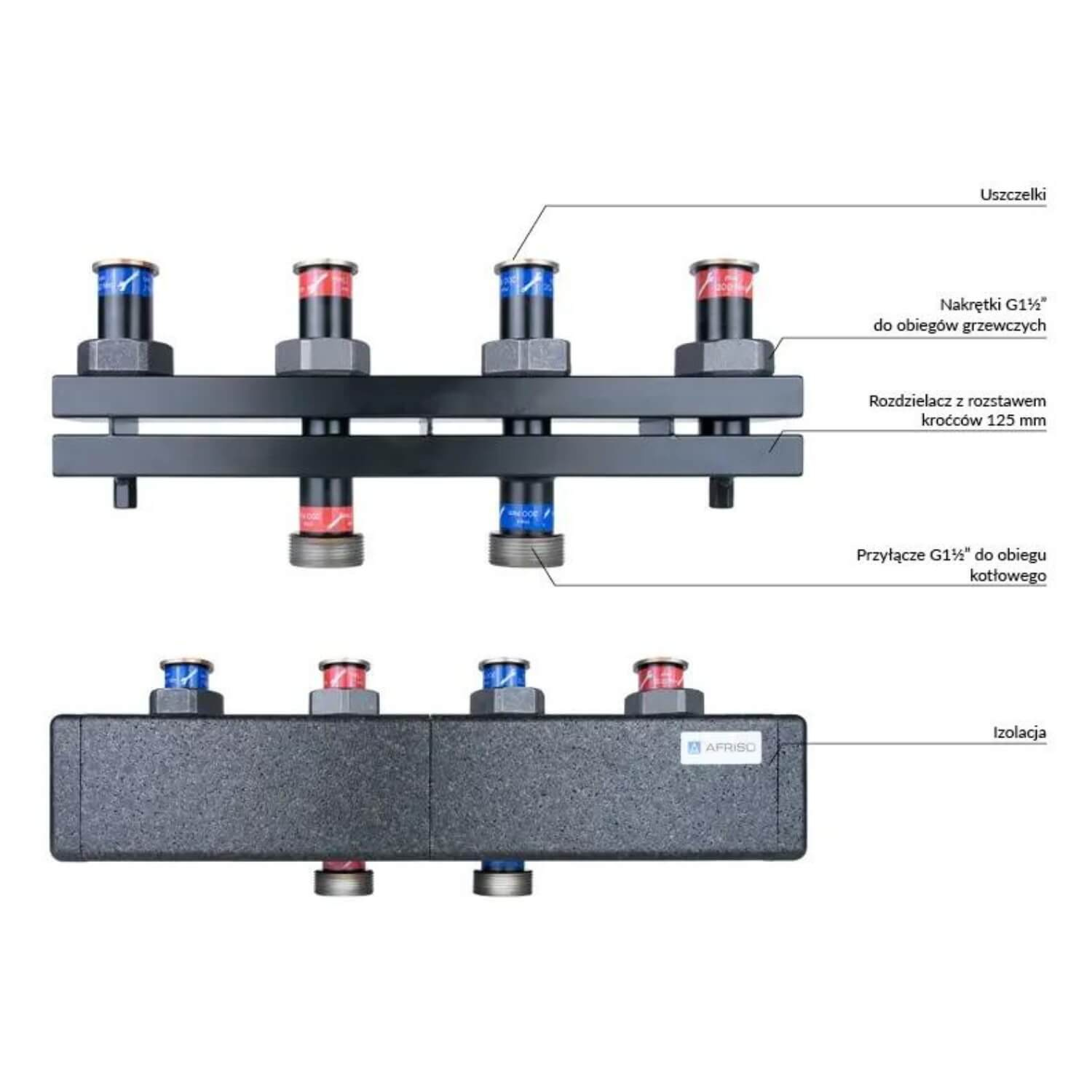 Rozdzielacz AFRISO KSV 125-2, do 70 kW, dla 2 obiegów