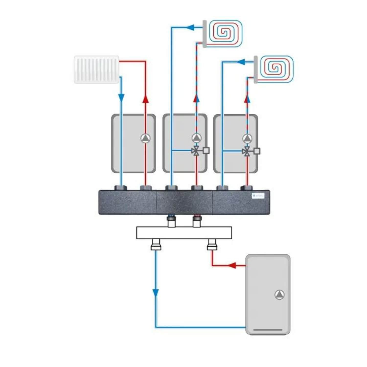 Zestaw trzech grup pompowych PrimoTherm + rozdzielacz 3 obiegi bez sprzęgła