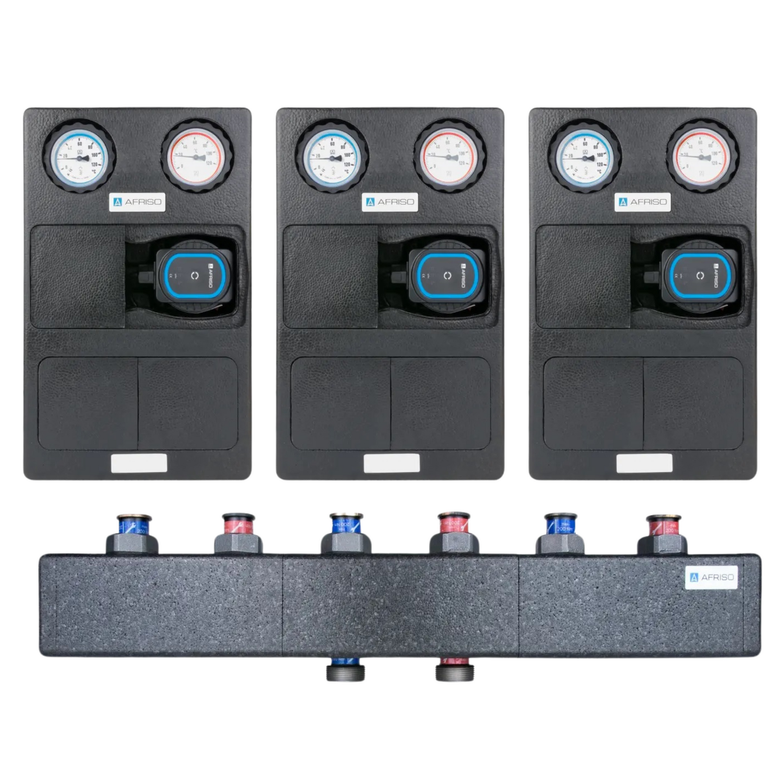 AFRISO Zestaw czterech grup pompowych PrimoTherm 4 obiegi z rozdzielaczem z mieszaczem bez sprzęgła