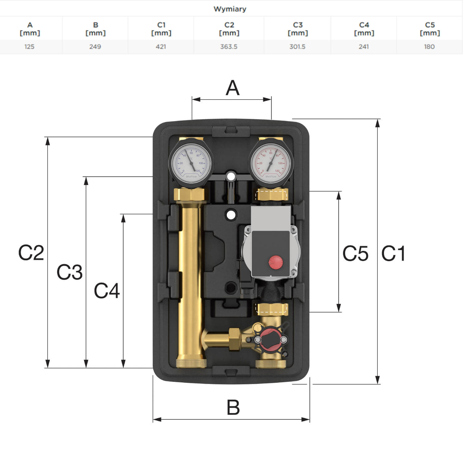 - Precyzyjna kontrola temperatury: Wbudowane termometry kontaktowe w rączkach zaworów umożliwiają dokładny odczyt temperatury (zakres 0–120°C), co zwiększa kontrolę nad systemem.