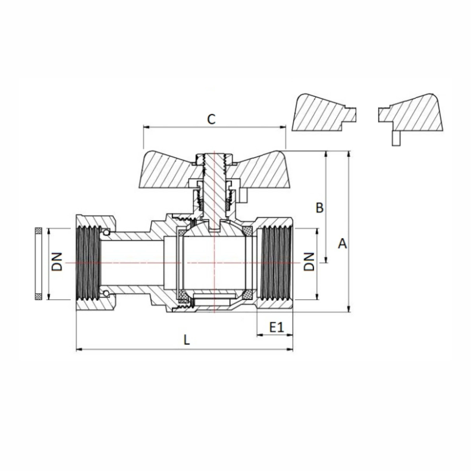 INVENA 1/2" – zawór kulowy prosty typ ciężki PROV z półśrubunkiem