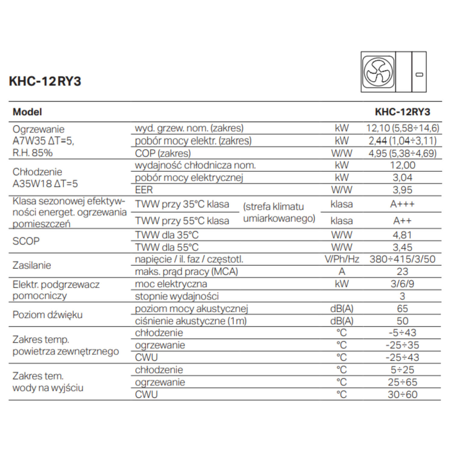 Model KAISAI KHC Arctic 12 kW jest pompą ciepła typu powietrze–woda, która pobiera energię cieplną z powietrza zewnętrznego i przekazuje ją do instalacji centralnego ogrzewania oraz systemu ciepłej wody użytkowej.