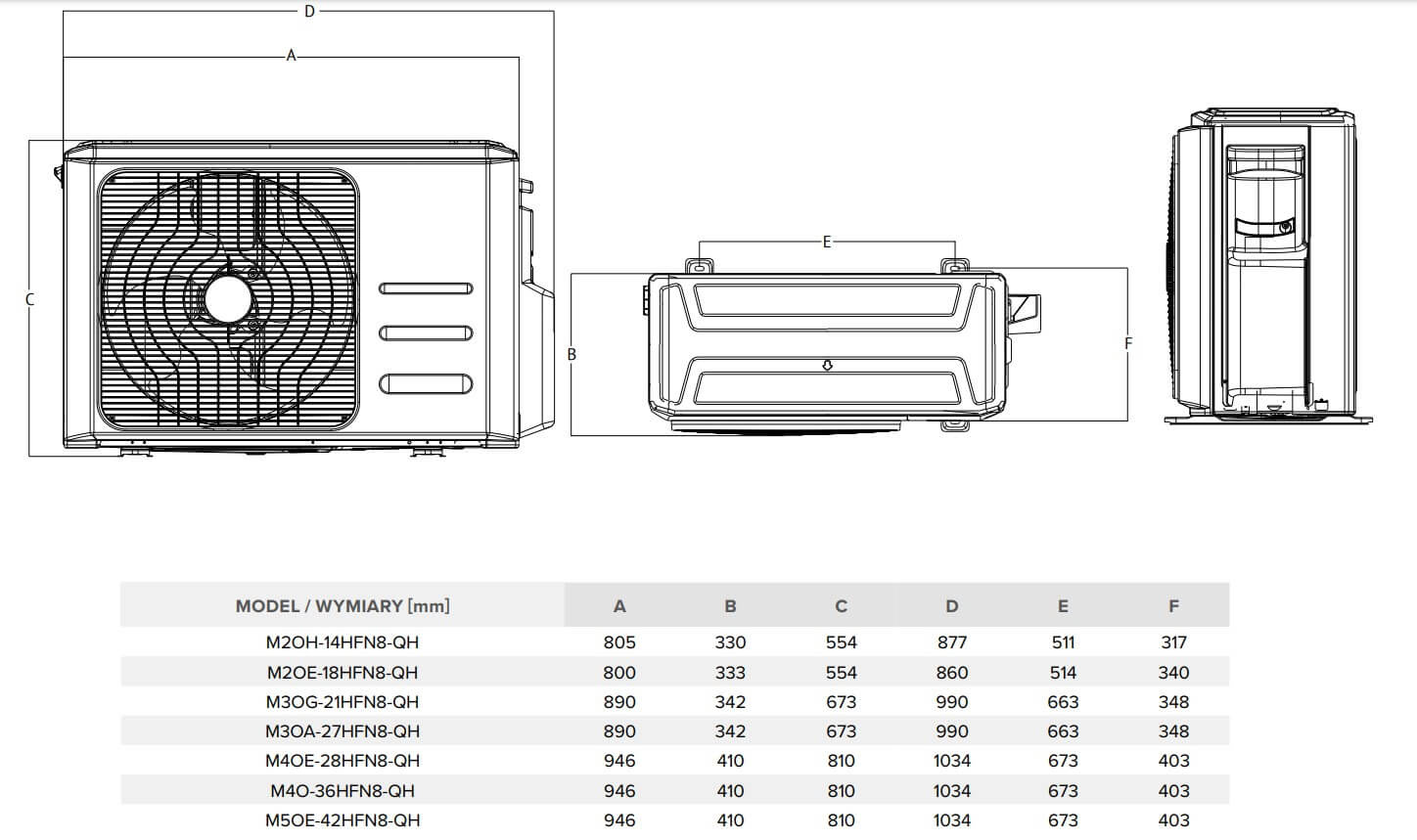 - Wysoka wydajność grzewcza i chłodnicza zapewniająca komfort w każdych warunkach