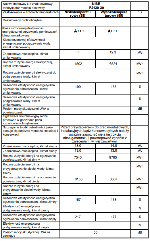 - Współczynnik SCOP: >5,0 (klimat umiarkowany)