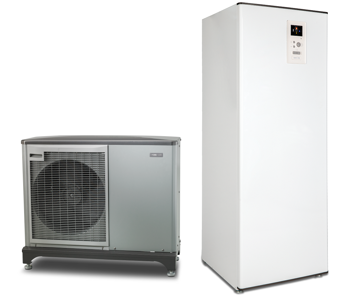 Zestawy COMPACT obejmują systemy do centralnego ogrzewania, chłodzenia i produkcji ciepłej wody użytkowej, przy temperaturze na zewnątrz do – 20ºC. W skład zestawu COMPACT MONOBLOK wchodzi pompa ciepła NIBE F2040 oraz centrala wewnętrzna SHK 200M. Centrala SHK 200M wyposażona jest w wężownicowy, emaliowany zasobnik wody o pojemności 180l, kocioł elektryczny 9 kW, grupę bezpieczeństwa z zaworem 3 bar, manometrem i odpowietrznikiem automatycznym, naczynie przeponowe, pompę obiegową i 2 zawory trójdrogowe z siłownikami (grzanie/chłodzenie i c.o./c.w.u.). Kontrolę urządzeń zapewnia wbudowany w SHK sterownik z kolorowym wyświetlaczem.
