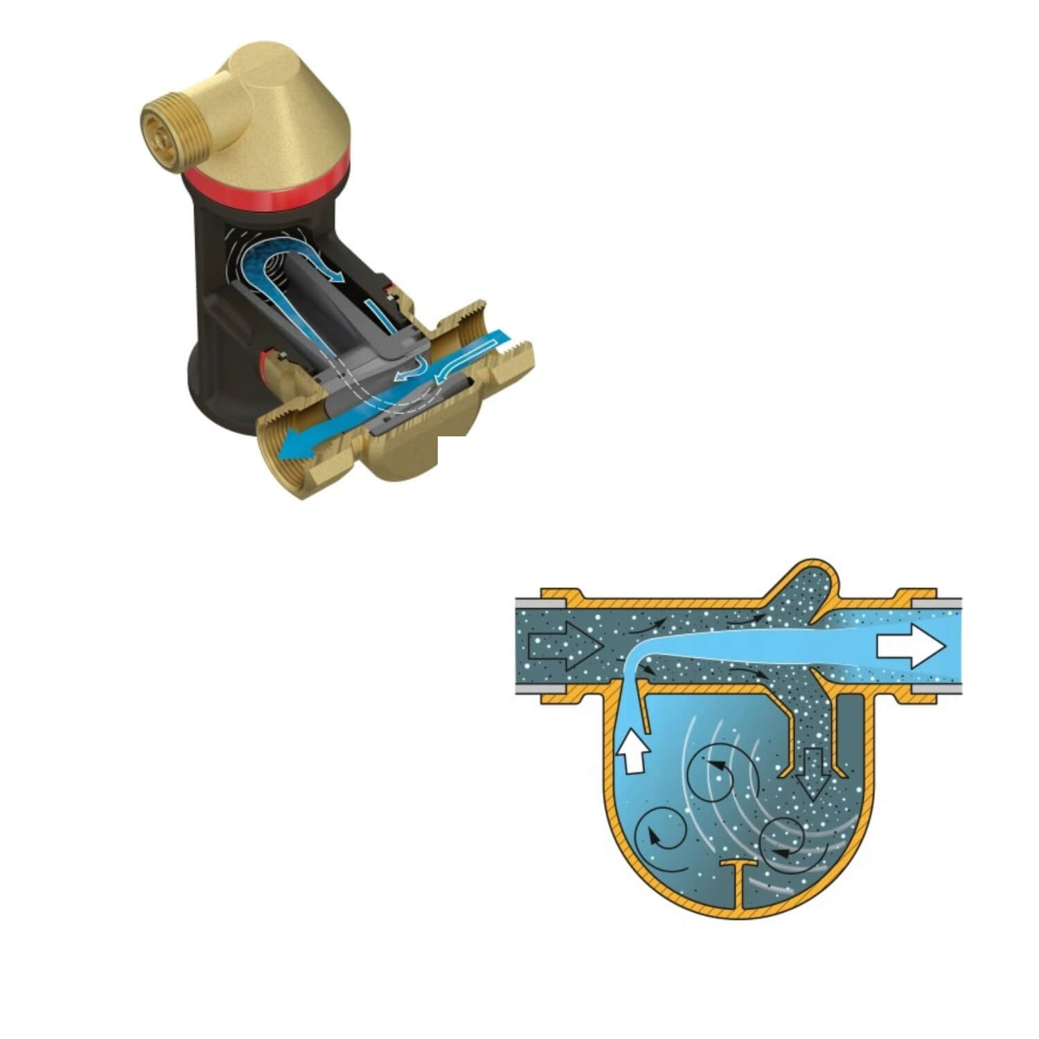 - Skuteczna separacja powietrza i zanieczyszczeń chroni pompę, kocioł i inne urządzenia instalacyjne