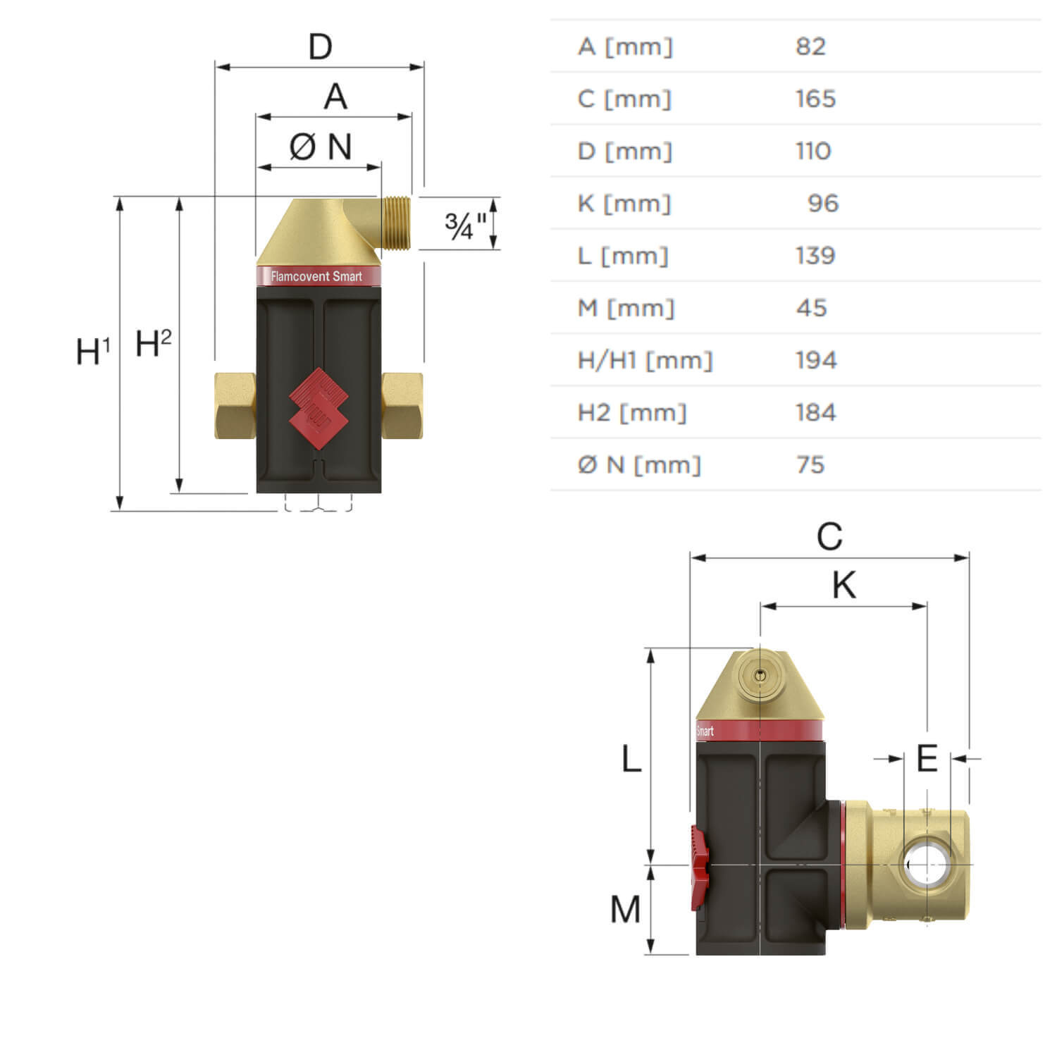 Separator powietrza Flamco Clean Smart G1 1/4"F jest częścią serii Flamcovent Smart i bazuje na sprawdzonym systemie Flamco XStream. Produkt umożliwia efektywną separację powietrza i zanieczyszczeń w instalacjach CO, zapewniając stabilny przepływ wody i optymalną pracę całego układu grzewczego lub chłodniczego. Separator można stosować zarówno w nowych, jak i modernizowanych systemach, w tym podczas przejścia z instalacji otwartej na zamkniętą.