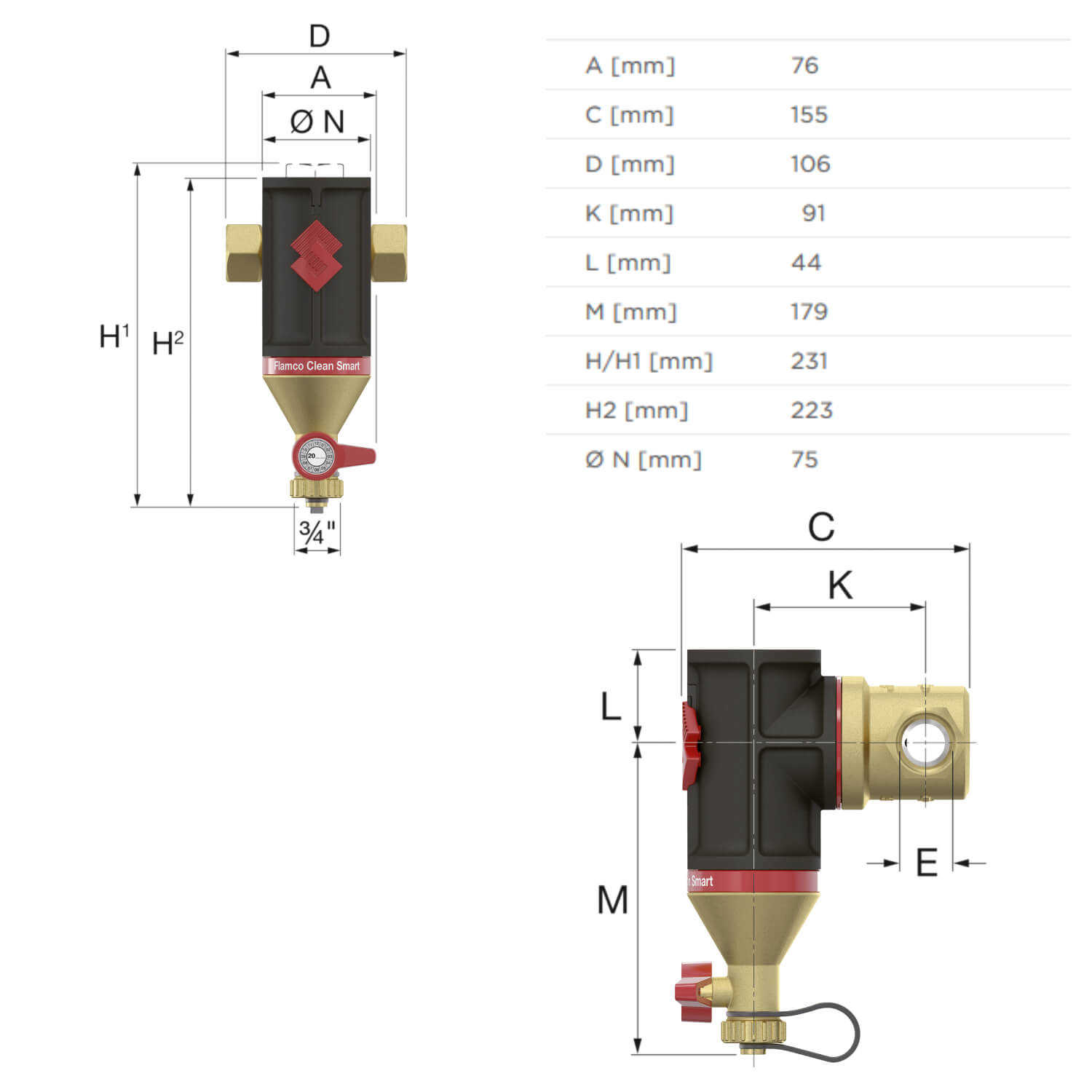 Specyfikacja techniczna separatora Flamco Clean Smart G1"F