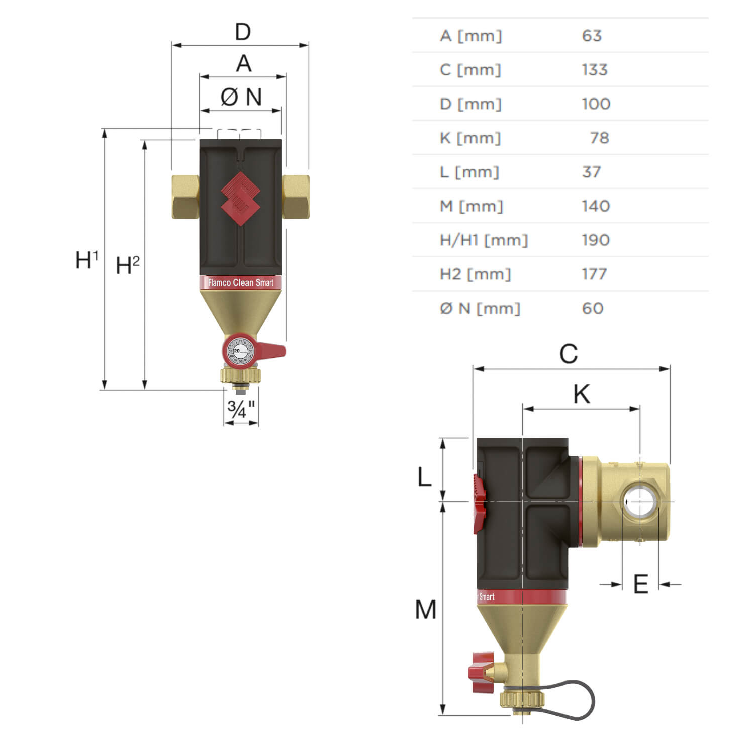 Flamco Clean Smart G3/4"F to zaawansowany separator zanieczyszczeń, przeznaczony do zamkniętych instalacji grzewczych i chłodniczych. Produkt zapewnia skuteczną separację powietrza i zanieczyszczeń, chroniąc kocioł, pompę i pozostałe urządzenia instalacyjne przed osadzaniem się drobin i cząstek magnetycznych. Kompaktowy magnetyczny separator zanieczyszczeń jest lekki, łatwy w montażu i niemal bezobsługowy, co zwiększa komfort użytkowania i wydajność całego systemu.