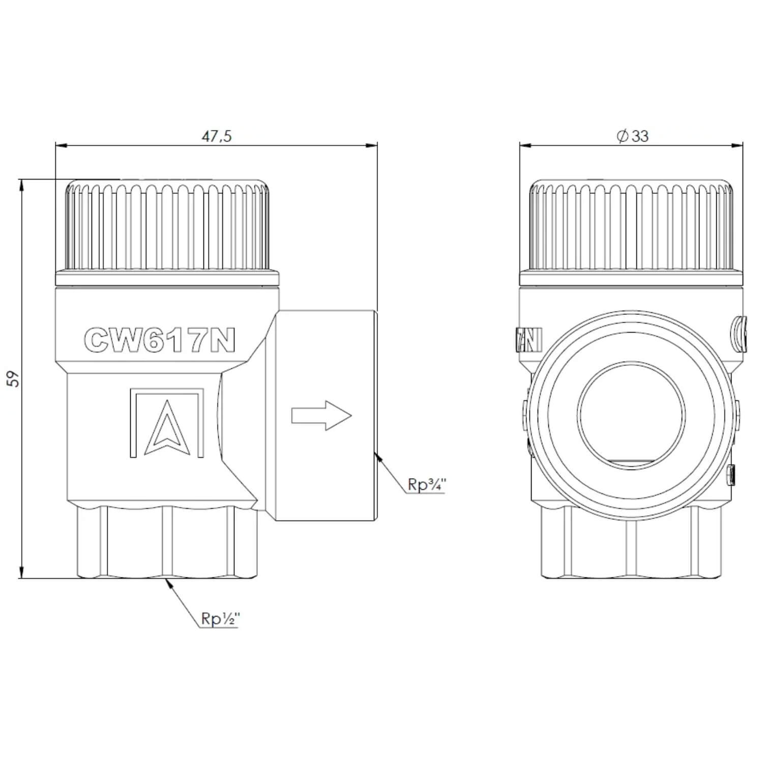 - Ciśnienie otwarcia zaworu: 2.5 bar - Zawór reaguje błyskawicznie na nadmierny wzrost ciśnienia, zapewniając natychmiastową ochronę.